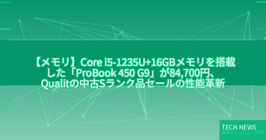 【メモリ】Core i5-1235U+16GBメモリを搭載した「ProBook 450 G9」が84,700円、Qualitの中古Sランク品セールの性能革新