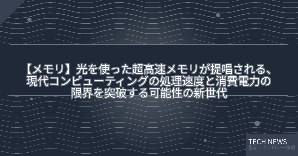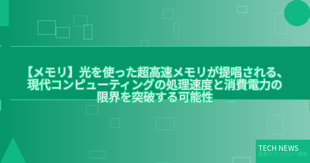 【メモリ】光を使った超高速メモリが提唱される、現代コンピューティングの処理速度と消費電力の限界を突破する可能性の新世代