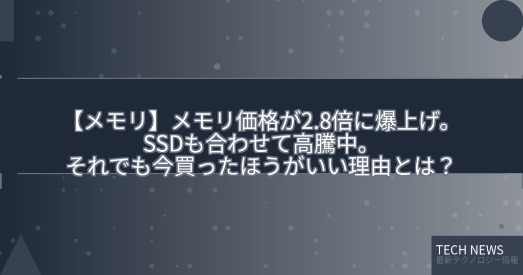 【メモリ】メモリ価格が2.8倍に爆上げ。SSDも合わせて高騰中。それでも今買ったほうがいい理由とは?