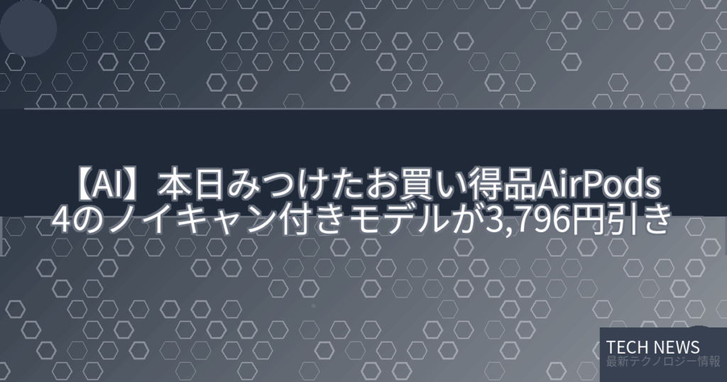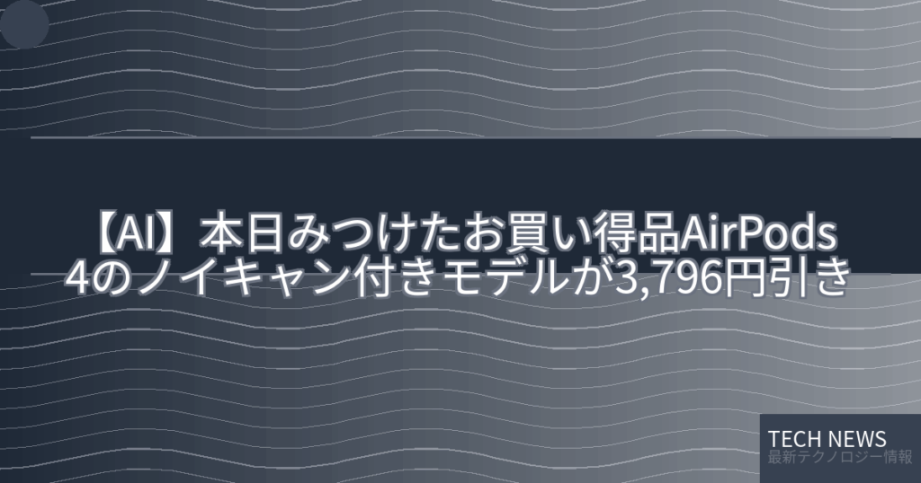 【AI】本日みつけたお買い得品AirPods 4のノイキャン付きモデルが3,796円引き