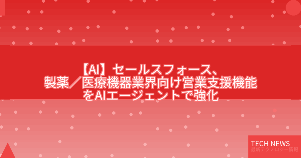 【AI】セールスフォース、製薬/医療機器業界向け営業支援機能をAIエージェントで強化が変える未来