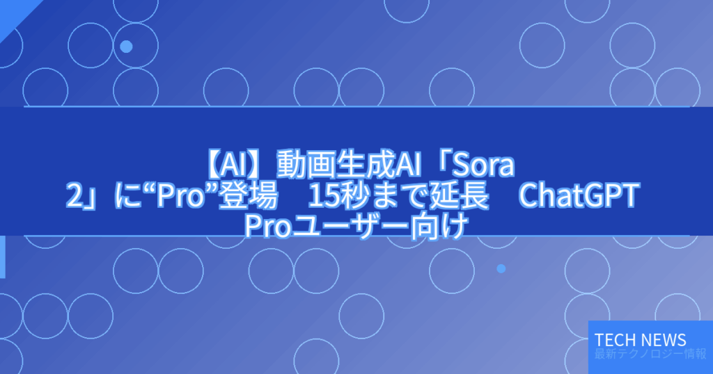【AI】動画生成AI「Sora 2」に“Pro”登場 15秒まで延長 ChatGPT Proユーザー向け
