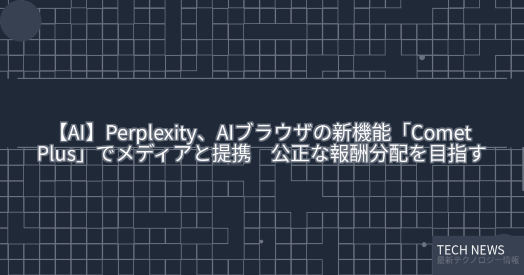 【AI】Perplexity、AIブラウザの新機能「Comet Plus」でメディアと提携 公正な報酬分配を目指す