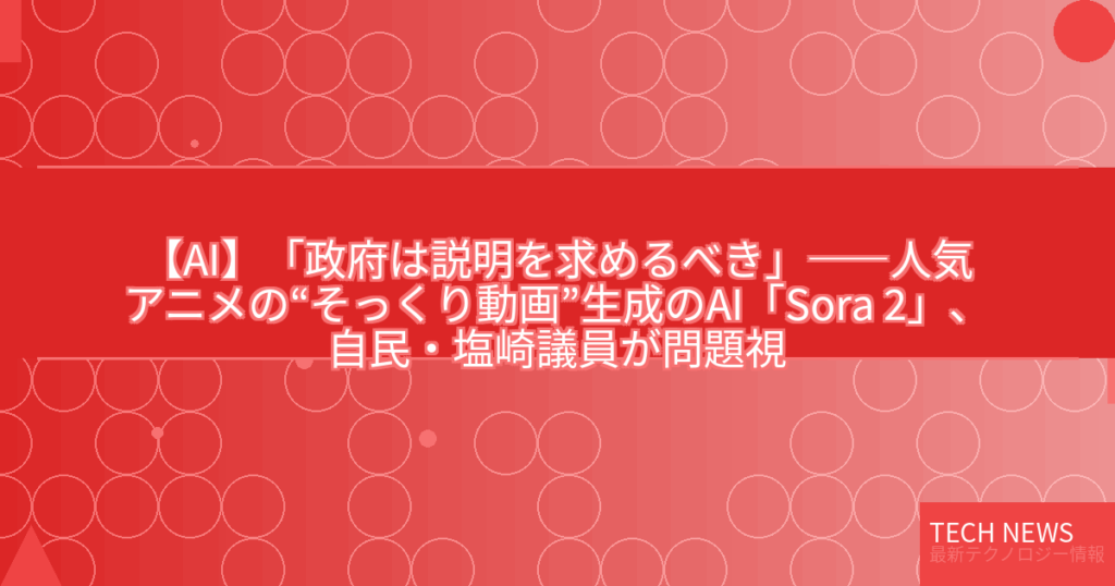 【AI】「政府は説明を求めるべき」――人気アニメの“そっくり動画”生成のAI「Sora 2」、自民・塩崎議員が問題視