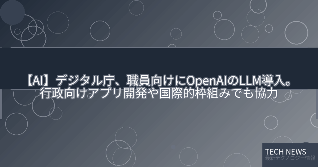【AI】デジタル庁、職員向けにOpenAIのLLM導入。行政向けアプリ開発や国際的枠組みでも協力