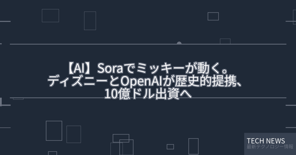 【AI】Soraでミッキーが動く。ディズニーとOpenAIが歴史的提携、10億ドル出資へ