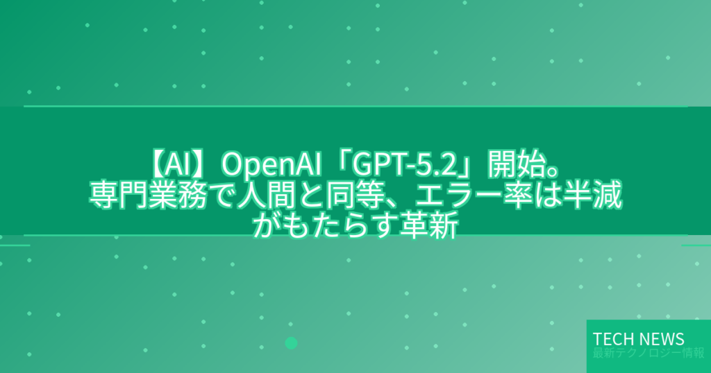 【AI】OpenAI「GPT-5.2」開始。専門業務で人間と同等、エラー率は半減がもたらす革新