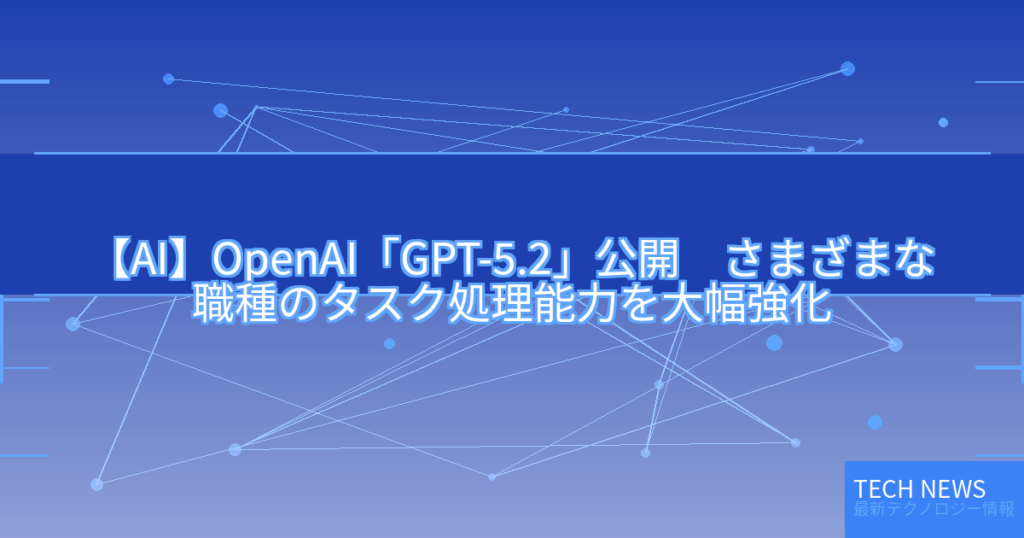 【AI】OpenAI「GPT-5.2」公開 さまざまな職種のタスク処理能力を大幅強化
