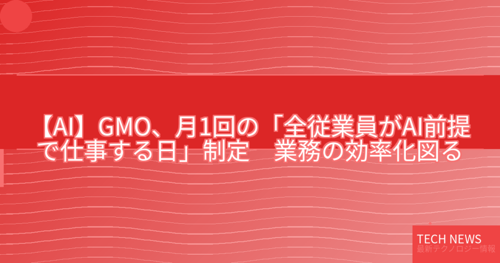 【AI】GMO、月1回の「全従業員がAI前提で仕事する日」制定 業務の効率化図る