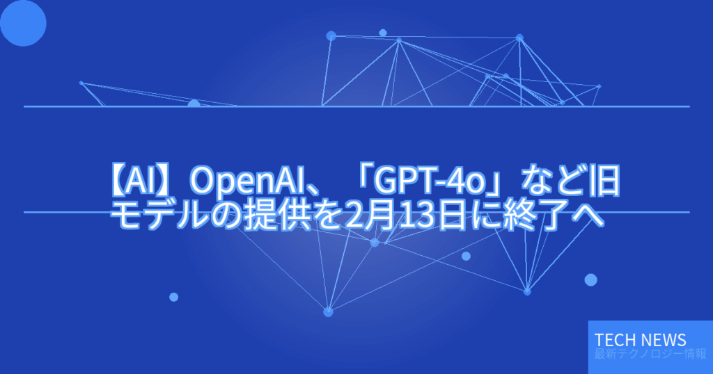 【AI】OpenAI、「GPT-4o」など旧モデルの提供を2月13日に終了へ