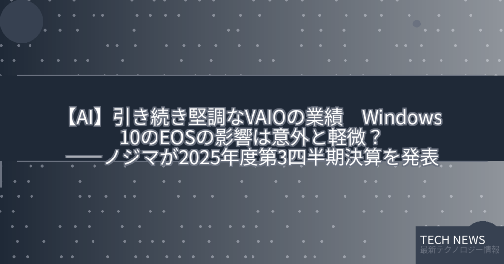 【AI】引き続き堅調なVAIOの業績 Windows 10のEOSの影響は意外と軽微?――ノジマが2025年度第3四半期決算を発表