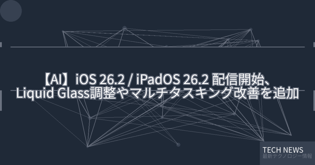 【AI】iOS 26.2 / iPadOS 26.2 配信開始、Liquid Glass調整やマルチタスキング改善を追加