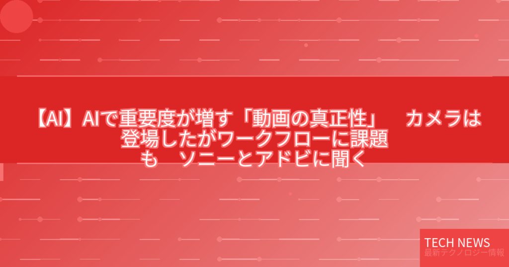 【AI】AIで重要度が増す「動画の真正性」 カメラは登場したがワークフローに課題も ソニーとアドビに聞く