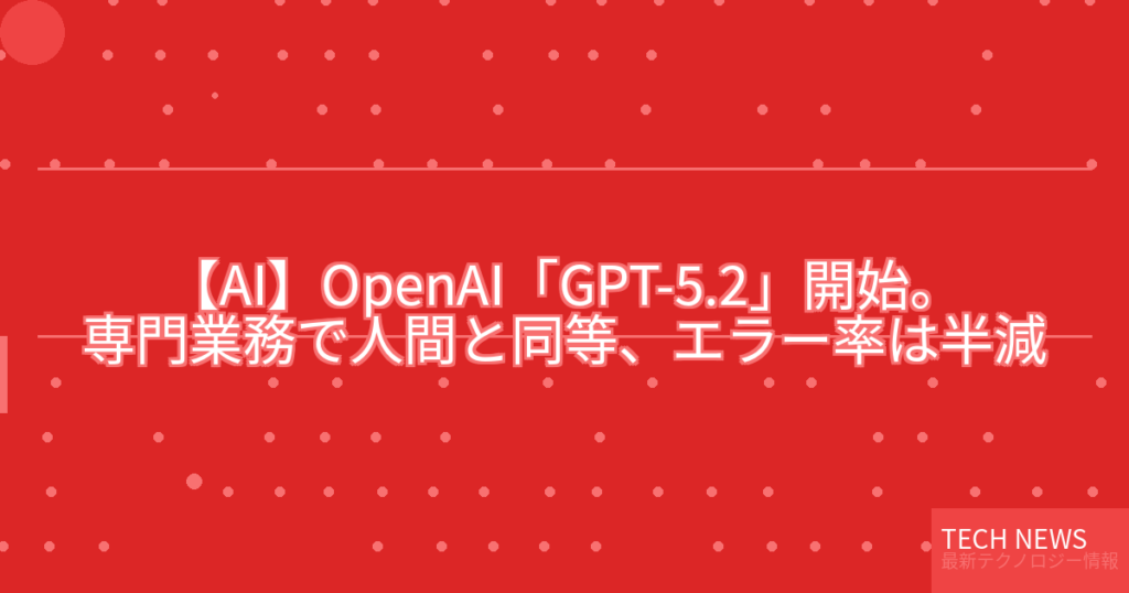 【AI】OpenAI「GPT-5.2」開始。専門業務で人間と同等、エラー率は半減