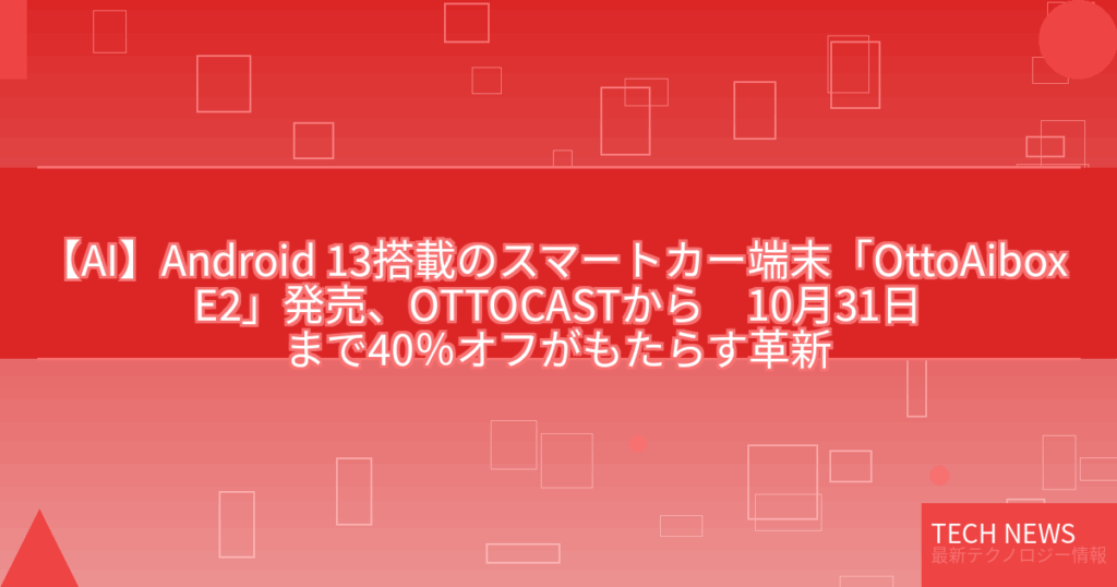 【AI】Android 13搭載のスマートカー端末「OttoAibox E2」発売、OTTOCASTから 10月31日まで40%オフがもたらす革新
