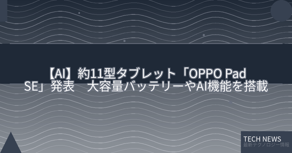 【AI】約11型タブレット「OPPO Pad SE」発表 大容量バッテリーやAI機能を搭載