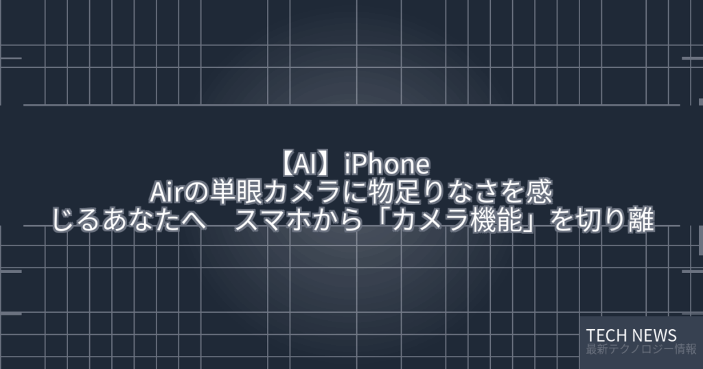 最新ニュースとその考察 📰 元記事の内容 記事タイトル:iPhone Airの単眼カメラに物足りなさを感じるあなたへ スマホから「カメラ機能」を切り離す3つの選択肢 記事概要: 情報源: 元記事を読む → 🔍 技術的背景と詳細解説 スマートフォ... -