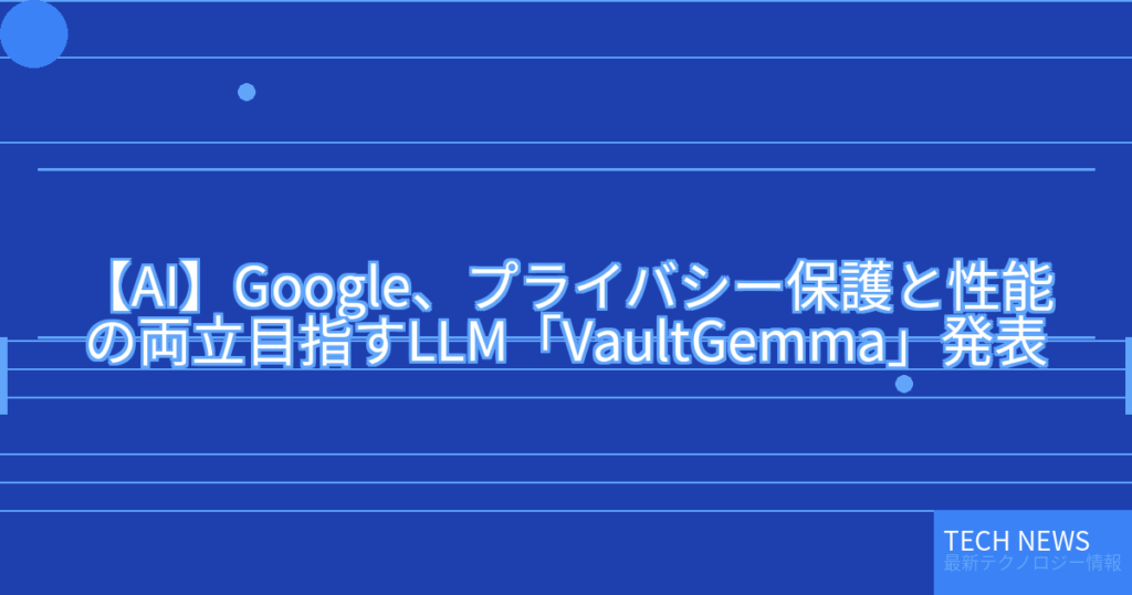 【AI】Google、プライバシー保護と性能の両立目指すLLM「VaultGemma」発表