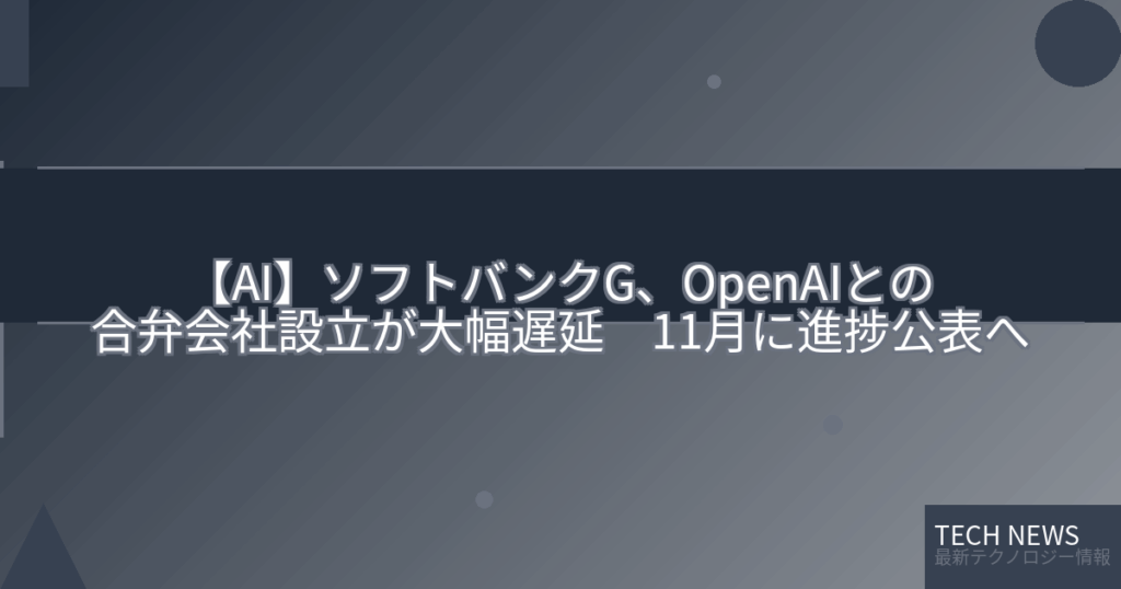 【AI】ソフトバンクG、OpenAIとの合弁会社設立が大幅遅延 11月に進捗公表へ