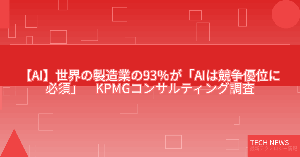 【AI】世界の製造業の93%が「AIは競争優位に必須」 KPMGコンサルティング調査