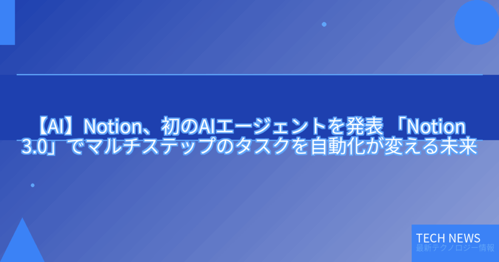 【AI】Notion、初のAIエージェントを発表 「Notion 3.0」でマルチステップのタスクを自動化が変える未来