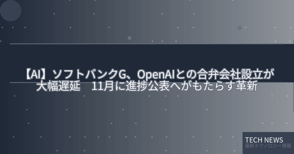 【AI】ソフトバンクG、OpenAIとの合弁会社設立が大幅遅延 11月に進捗公表へがもたらす革新