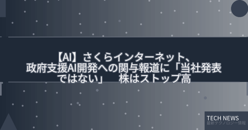 【AI】さくらインターネット、政府支援AI開発への関与報道に「当社発表ではない」 株はストップ高