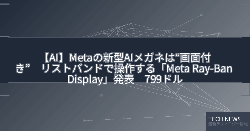 【AI】Metaの新型AIメガネは“画面付き” リストバンドで操作する「Meta Ray-Ban Display」発表 799ドルが変える未来