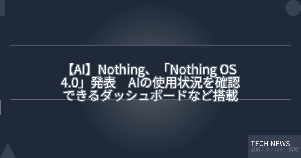 【AI】Nothing、「Nothing OS 4.0」発表 AIの使用状況を確認できるダッシュボードなど搭載