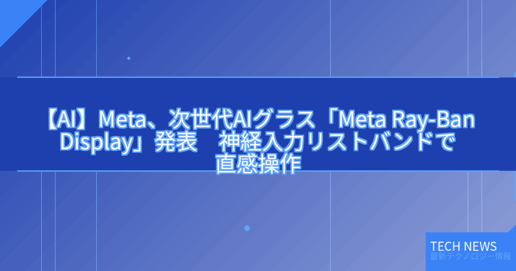 【AI】Meta、次世代AIグラス「Meta Ray-Ban Display」発表 神経入力リストバンドで直感操作