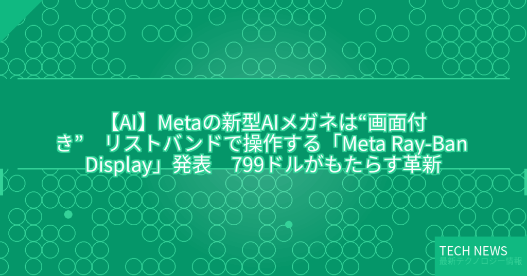【AI】Metaの新型AIメガネは“画面付き” リストバンドで操作する「Meta Ray-Ban Display」発表 799ドルがもたらす革新