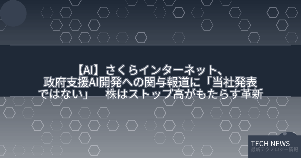 【AI】さくらインターネット、政府支援AI開発への関与報道に「当社発表ではない」 株はストップ高がもたらす革新