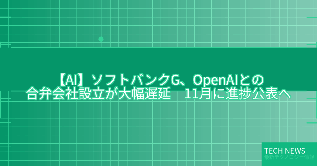 【AI】ソフトバンクG、OpenAIとの合弁会社設立が大幅遅延 11月に進捗公表へ