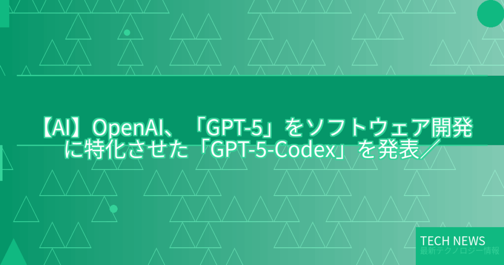 【AI】OpenAI、「GPT‑5」をソフトウェア開発に特化させた「GPT‑5-Codex」を発表/