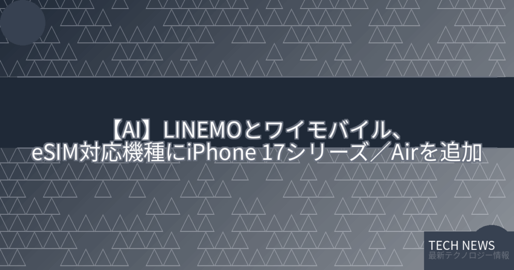 【AI】LINEMOとワイモバイル、eSIM対応機種にiPhone 17シリーズ/Airを追加