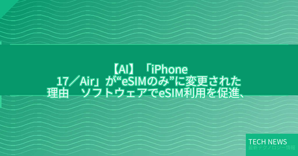 【AI】「iPhone 17/Air」が“eSIMのみ”に変更された理由 ソフトウェアでeSIM利用を促進、キャリア側の対応も進むが変える未来