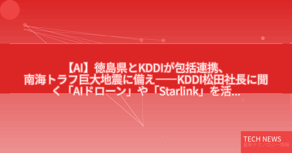 【AI】徳島県とKDDIが包括連携、南海トラフ巨大地震に備え――KDDI松田社長に聞く「AIドローン」や「Starlink」を活かした事前防災への取り組み
