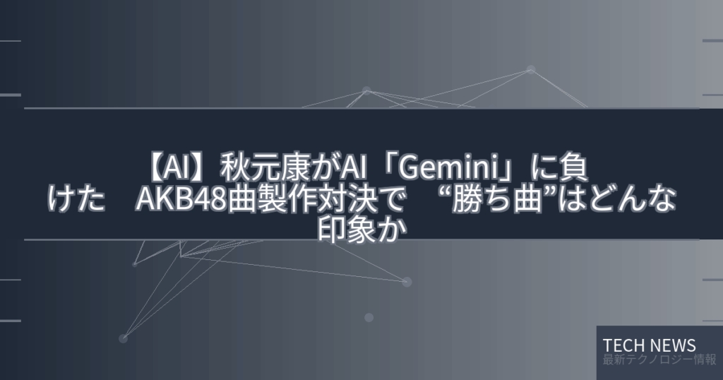 【AI】秋元康がAI「Gemini」に負けた AKB48曲製作対決で “勝ち曲”はどんな印象か