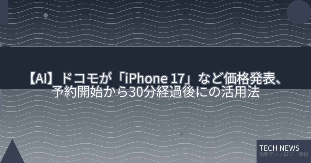 【AI】ドコモが「iPhone 17」など価格発表、予約開始から30分経過後にの活用法