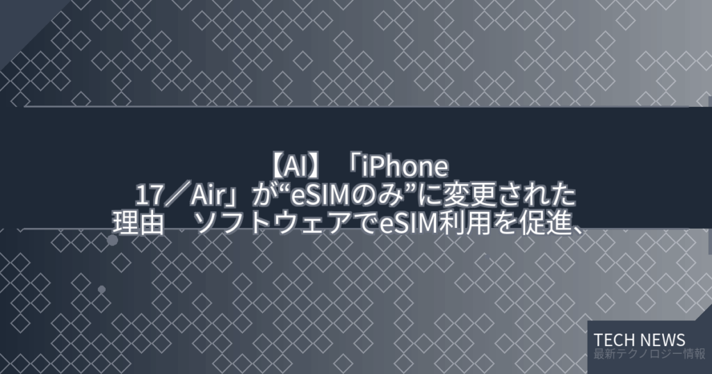 【AI】「iPhone 17/Air」が“eSIMのみ”に変更された理由 ソフトウェアでeSIM利用を促進、キャリア側の対応も進む
