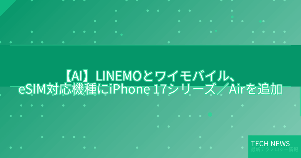 【AI】LINEMOとワイモバイル、eSIM対応機種にiPhone 17シリーズ/Airを追加