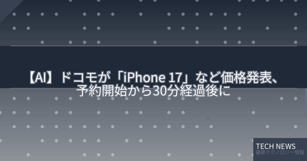 【AI】ドコモが「iPhone 17」など価格発表、予約開始から30分経過後に