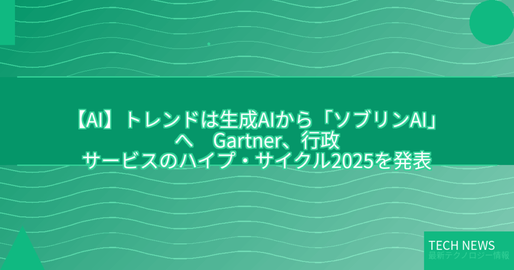 Gartnerは2025年の行政サービスのハイプ・サイクルにおいて、ソブリンAIとAIエージェントを中核技術と位置付けた。各国政府がテクノロジー主権や市民対応の自動化を推進する中、日本でも導入が進むと予測される。 -