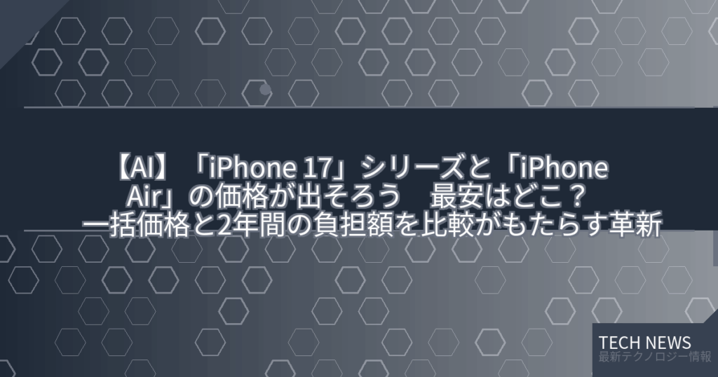 【AI】「iPhone 17」シリーズと「iPhone Air」の価格が出そろう 最安はどこ? 一括価格と2年間の負担額を比較がもたらす革新