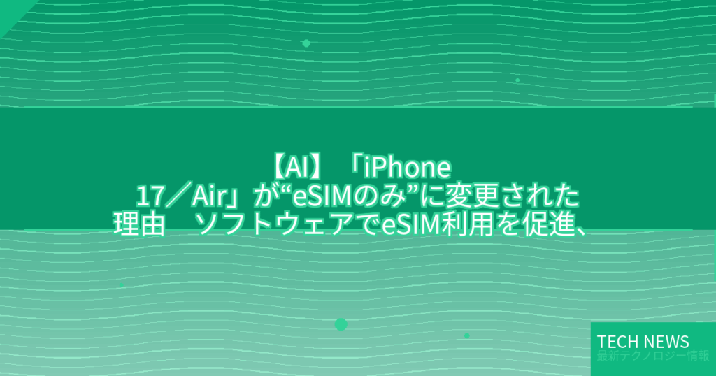 【AI】「iPhone 17/Air」が“eSIMのみ”に変更された理由 ソフトウェアでeSIM利用を促進、キャリア側の対応も進む