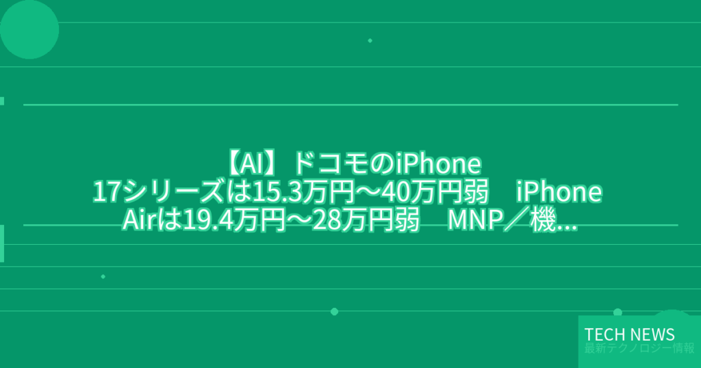【AI】ドコモのiPhone 17シリーズは15.3万円~40万円弱 iPhone Airは19.4万円~28万円弱 MNP/機種変更/契約変更には割引あり