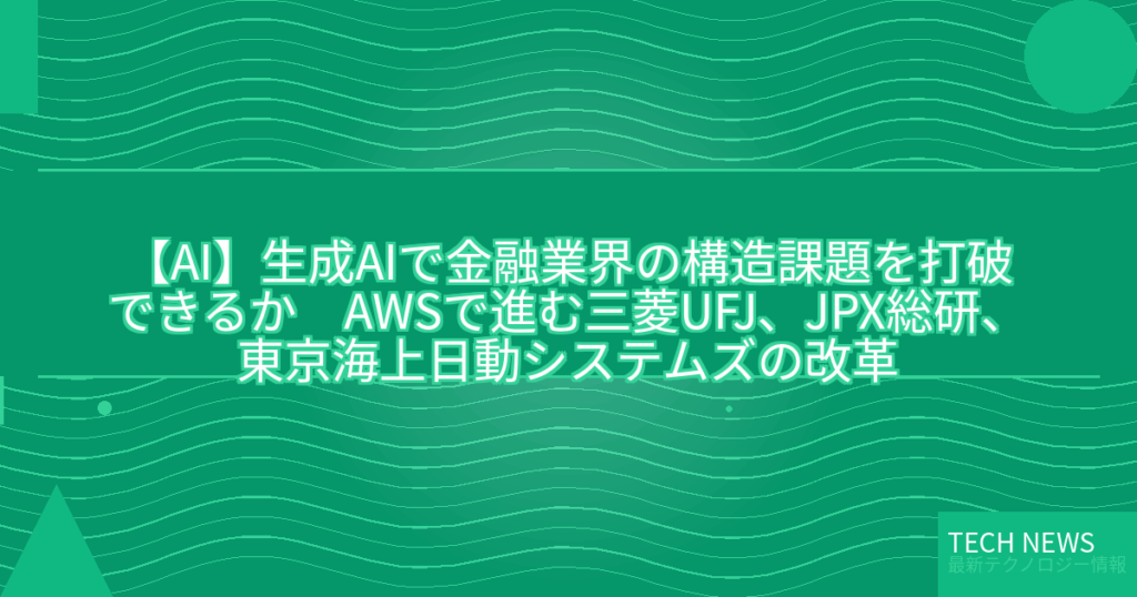 【AI】生成AIで金融業界の構造課題を打破できるか AWSで進む三菱UFJ、JPX総研、東京海上日動システムズの改革
