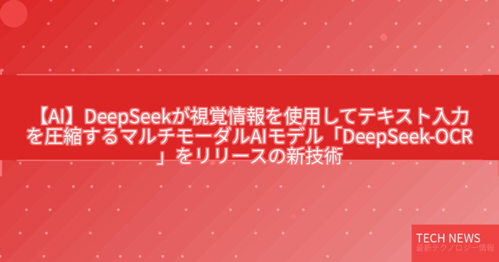 【AI】DeepSeekが視覚情報を使用してテキスト入力を圧縮するマルチモーダルAIモデル「DeepSeek-OCR」をリリースの新技術