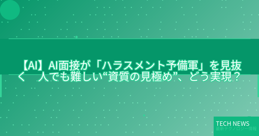 【AI】AI面接が「ハラスメント予備軍」を見抜く 人でも難しい“資質の見極め”、どう実現?