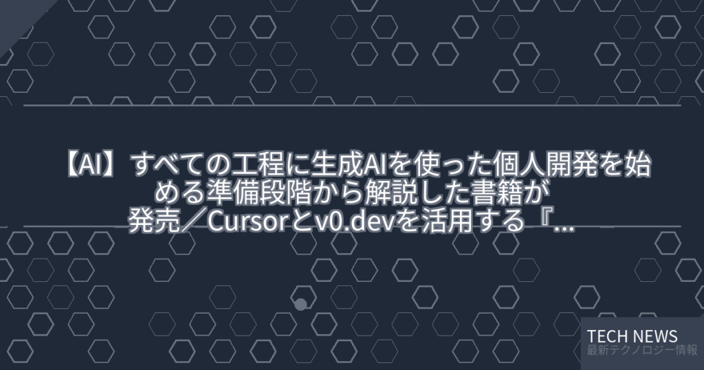 【AI】すべての工程に生成AIを使った個人開発を始める準備段階から解説した書籍が発売/Cursorとv0.devを活用する『AIと個人開発したくなったらまずCursorで要件定義だ!』Book Watch/ニュース